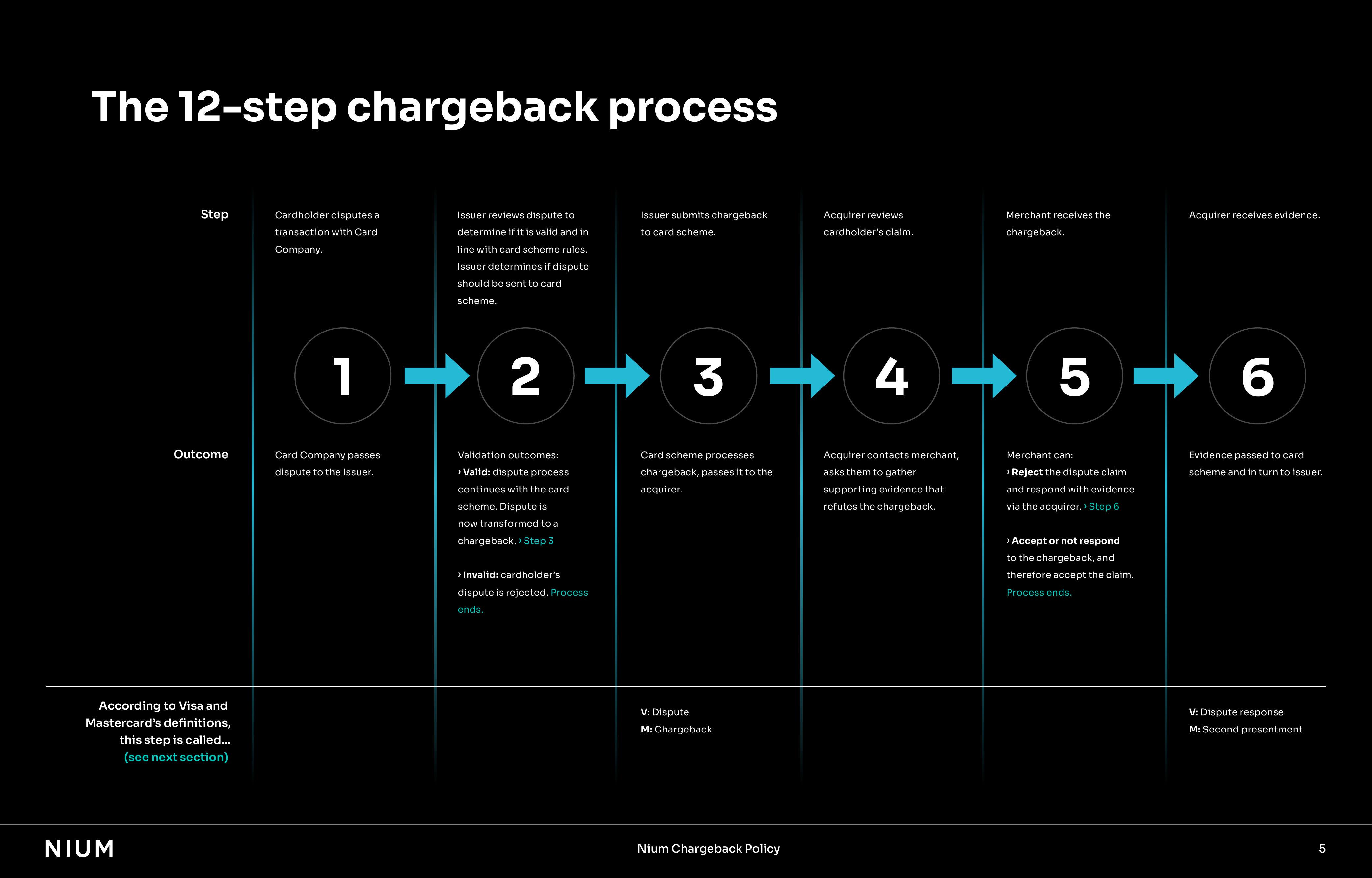 This document looks at cardholder disputes, representing most of the chargebacks within Nium's ecosystem. We first outline the general chargeback process and resolution timelines. Then, we cover Nium's chargeback process.